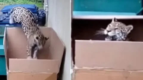 รอยยิ้มของ เจ้าป่าเสือจากัวร์ ที่มีความสุขได้ง่ายๆ ในลังกล่องใบเดียว น่ารักมากๆเลยจ้า