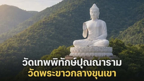 ทึ่งทั่วไทย วัดเทพพิทักษ์ปุณณาราม วัดพระขาวกลางขุนเขา งดงามสงบและโดดเด่นจนมองเห็นได้แต่ไกล